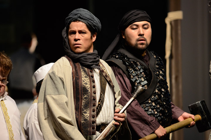 Představme ale sólisty: do role Wotana byl obsazen známý basbaryton z Berlína Gerd Grochowski. Zpívá Wagnerovy role (Günthera, Terlamunda a další) ve světě často a nemá pěvecky se svým Wotanem žádné obtíže. Působí ale celkově poněkud matně. V protikladu k jeho určité vznešené strnulosti je však výborný jeho našeptávač a rádce bůh Loge ve vynikajícím hlasovém i hereckém podání mexického tenora Pedro Velázques Díaze. Ten tak vytvořil nezapomenutelnou kreaci. A abychom šli popořádku, dalšího z bohů dobře zpíval Iurie Ciobanu z Rumunska. Exoticky se vyjímal představitel Donnera, Seho Chang z Koreje. Svým vzhledem a velmi expresivním energickým vystupováním i vzhledem připomínal tak trochu Čingischána.