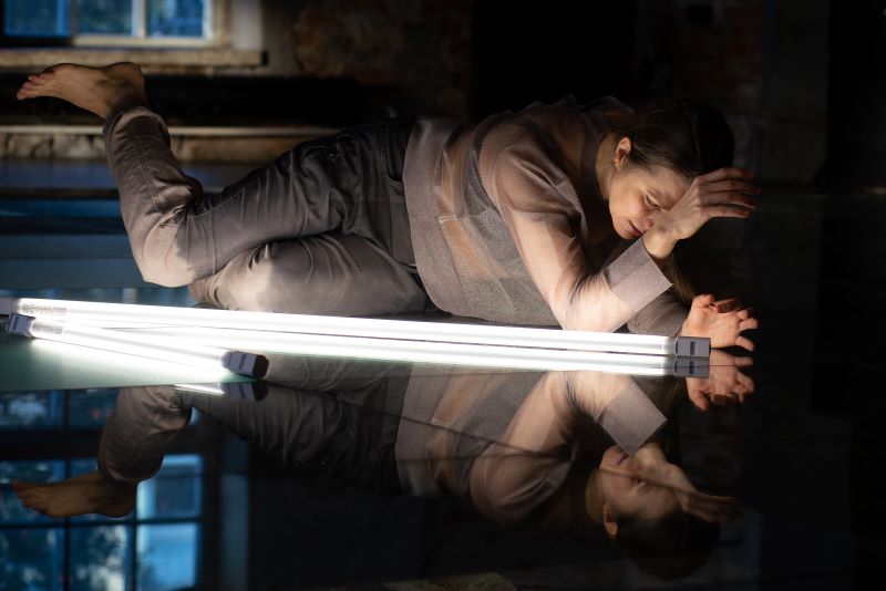 Snažili jsme se co nejvíce odbourat technickou stránku představení a použít pouze světla připomínající domácí osvětlení. S Kallem jsme hodně hledali a minimalizovali, minimalizovali a minimalizovali vybavení, abychom navodili čistý emocionální prostor pro intimní sólový kus. Naším cílem bylo pracovat jednoduše, bez tisíců divadelních světel a vybavení, kouřostrojů a podobně. Tím jsme chtěli ještě více evokovat existencialismus, prostor pro vnitřní podvědomí a to, co je „mezi“, jako v jemných okamžicích mezi myšlenkami nebo mezi vnitřním a vnějším světem. Toto hledání jádra, čistoty a existenciální upřímnosti bylo pro mě i jako choreografku velkým tématem, abych volila co nejautentičtější prostředky. Protože se jedná o sólo, je zde svým způsobem přítomen pocit osamělosti, izolace…