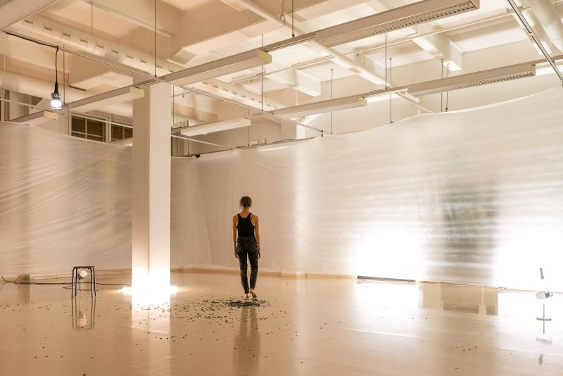Snažili jsme se co nejvíce odbourat technickou stránku představení a použít pouze světla připomínající domácí osvětlení. S Kallem jsme hodně hledali a minimalizovali, minimalizovali a minimalizovali vybavení, abychom navodili čistý emocionální prostor pro intimní sólový kus. Naším cílem bylo pracovat jednoduše, bez tisíců divadelních světel a vybavení, kouřostrojů a podobně. Tím jsme chtěli ještě více evokovat existencialismus, prostor pro vnitřní podvědomí a to, co je „mezi“, jako v jemných okamžicích mezi myšlenkami nebo mezi vnitřním a vnějším světem. Toto hledání jádra, čistoty a existenciální upřímnosti bylo pro mě i jako choreografku velkým tématem, abych volila co nejautentičtější prostředky. Protože se jedná o sólo, je zde svým způsobem přítomen pocit osamělosti, izolace…