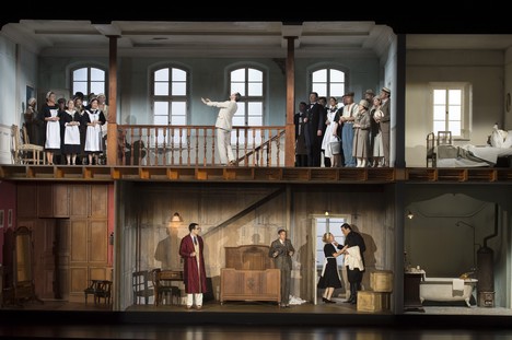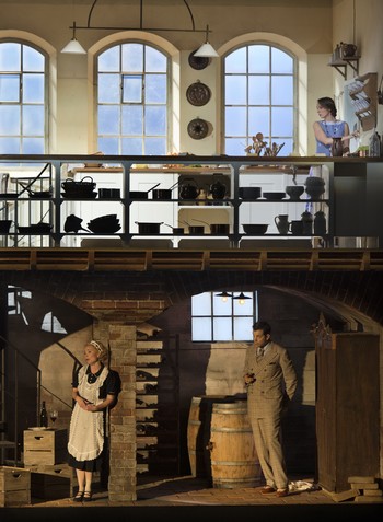 Réžia Svena-Erica Bechtolfa, scéna Alexa Ealesa a kostýmy Marka Boumana rozohrali príbeh v kultivovanom a vkusnom tóne. Žiaden lacný humor, ošúchané gagy, ale plastické a kontrastné portréty postáv a ich dôsledná vzájomná interakcia. Výsadou inscenátorov bolo simultánne rozohrávanie deja, bez toho, aby paralelné akcie, hoci ich bolo nespočetne, odpútavali od hudby. Už prvé dejstvo, scénicky komponované ako panoramatický rez almavivovským zámkom, umožňovalo v dvoch horizontálnych rovinách a troch-štyroch vertikálnych výrezoch sledovať súbežné dianie.Figaro skladá posteľ, Gróf si záletnícky upravuje účes, Marcellina sa vkráda do Zuzankinej izbičky. Áriu Dove sono spieva Grófka na posteli, neskoršia kontroverzia s Grófom je hádkou mladého, plamenného páru. Skrývačky vyznievajú vierohodne, k dispozícii je vedľajšia kúpeľňa (Cherubín sa schúli do vane) a aj ďalšie scény vďaka javisku rozdelenému na viacero priestorov vyznievajú takmer až filmovo. Tretie dejstvo otvára aj podzemnú vínnu pivnicu, v hornej časti kuchyňu, jedáleň. A do toho všetkého pestrý sled udalostí.  Zvláštny akcent dal Bechtolf na portrét Grófky, na jej frustráciu a sklamanie z manželovej záletníckej povahy. Pekne to ukazuje záver obrazu, keď Grófka unikne z hlavnej scény a šťastné chvíle si pripomenie vybratím vlastných svadobných šiat zo skrine. Barbarinu poníma réžia ako mladú divošku, neskrotné dievčisko túžiace po Cherubínovi, ale aj ostrojazyčne pripomínajúce Grófovi jeho hriechy. Zriedka som videl tak úspešne vyriešený záverečný obraz, umiestnený tento raz do skleníka. Rozuzlenie deja tieklo prirodzene a vierohodne, tak ako aj bola poňatá celá Figarova svadba. Ani príliš súčasná, ani „parochňová“, skrátka nadčasová a vtipná.