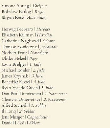 Nový blok repríz inscenace Straussova zpracování Wildeova dramatu, která měla premiéru už před více než čtyřmi desetiletími (tehdy ještě pod taktovkou Karla Böhma a v titulní roli s legendární Leonie Rysanek), v lednu nabízí Vídeňská státní opera.Nejnověji Salome v rakouské metropoli zpívá americká sopranistka se skandinávskými kořeny Catherine Naglestad, Jochanaana narychlo převzal i v Praze v této roli dobře známý Tomasz Konieczny (rozhovor, který před časem Opeře Plus poskytl, najdete zde), když původně ohlášený Juha Uusitalo kvůli nemoci odřekl.