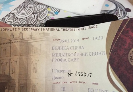 Národní divadlo v Bělehradě má orchestřiště, pár řad v přízemí, na které by se stěží vešla půlka tenisového kurtu, a nad tím tři patra galerií a lóží. Běhouny na schodech již dávno nejsou šarlatově rudé a ve foyeru se před začátkem nepodávalo nic, o přestávce pak šampaňské, voda z plastu a limonády z plechovek. Lidí přišlo méně než akorát. Podle své nátury byste hlediště mohli považovat za poloplné, anebo poloprázdné. Nevím, jak moc za to mohou ceny vstupenek. Já tu svou koupil odpoledne ve slevě za pět set místních dinárů, což je méně, než co u nás v kotlině stojí lístek do kina.
