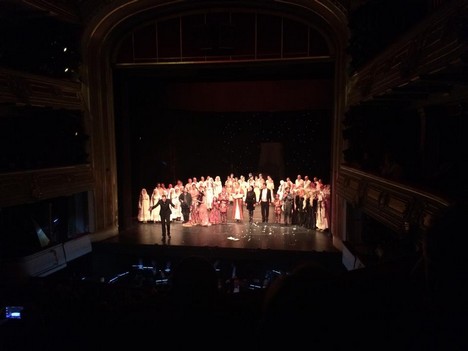 Ve druhé půlce jsem se ztratil. Ještě to nebylo na usnutí, ale představení ztratilo rytmus. Zpěváci často byli na scéně sami či ve dvou, dělali dramatické pauzy, a kdo umí srbsky, ten si na displeji nad scénou mohl přečíst, co že se děje. Zřejmě se jednalo o důležitý vzkaz do společnosti, neboť se všichni tvářili vážně. V závěru dílo patrně gradovalo, protože na scéně bylo plno. Diva v černém přivedla smečku chrtů, kteří se vrhli na jinou divu a trhali a drásali. Potom odtančili a na scénu se vrátila obrovská postel, tentokrát prázdná. Opodál gróf Sava v nadživotní velikosti zpíval hlubokým, sametovým hlasem, dámy v publiku byly dojaté, a potom byl konec. Nejdřív se tleskalo střídmě, potom vřele a na scéně se klanělo určitě přes osmdesát lidí – herců, tanečníků a zpěváků.