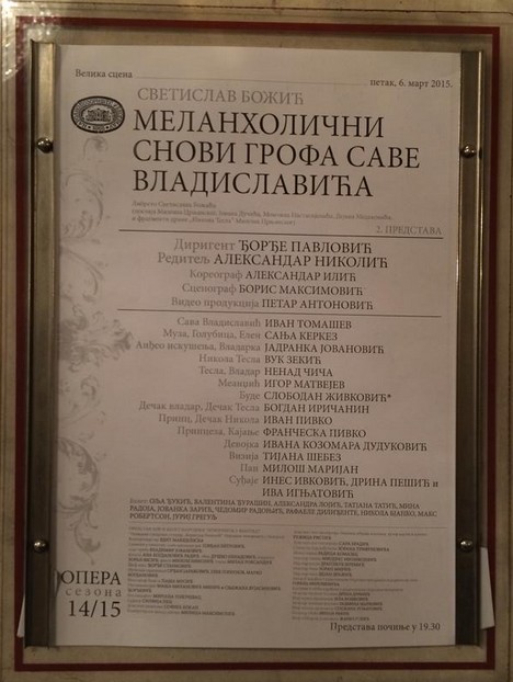 Moldávie, Turecko a Čína? Že vám to nic neříká? Nezoufejte! Nemusíte tam! Sava Vladislavić už tam byl. Ještě nebyla letadla ani mobilní telefony, ale hrabě Sáva si s tím poradil. Ve službách Petra Velikého se spojil s Moldavci, domluvil mír s Turkem a v Pekingu našel společnou řeč s Číňanem. V srbských školách je tento velikán opomíjen, ale v bělehradském Národním divadle už je známou tváří. Já sám jsem včera o opeře věděl jen o málo víc, než že „the show is not over untill the fat lady sings„. Dnes už vím dokonce i to, že existují opery, jejichž autoři jsou ještě naživu. „Melancholické sny hraběte Savy Vladislaviće“ jsou dílem Svetislava Božiće, který nejenom, že žije, ale ještě k tomu učí na univerzitě.