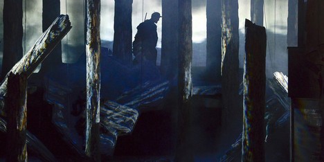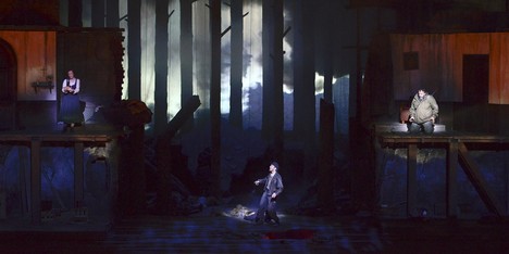 Už popisně řešená scéna Arne Walthera působí dojmem, že její tvůrce nedostal zadání prostor jeviště „vyřešit“, nýbrž „zaplnit“. Ocitáme se tak v realistických troskách kdysi honosného hostince se schodištěm mezi prvním patrem a přízemím.