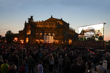 Výjimečnost okamžiku dotvrzovaly televizní vstupy ze zákulisí divadla i rozhovory se zajímavými hosty na pódiu před shromážděným několikatisícovým davem. Poslední, kdo mu před začátkem operní produkce přišel osobně popřát hezký zážitek nejen z konzumace piva, byl sám hudební ředitel Staatskapelle Dresden Christian Thielemann…