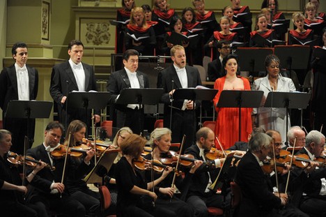 V drážďanském koncertním provedení dodala opeře patřičný lesk a švih Staatskapelle pod vedením zkušeného dirigenta Gabrielle Ferra; mohutně obsazený orchestr s dechy a bicími usazenými na vyvýšeném pódiu před početným sborem (sbormistr Pablo Assante) vzbuzoval respekt už na pohled.