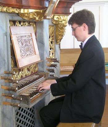 U varhan máme potíž v tom, že musíme vždy docházet za nimi. Čas cvičení se proto řídí také tím, kdy je volná cvičná varhanní třída ve škole nebo kdy je možné cvičit v kostele. Snažím se mít program sestavený tak, abych těchto příležitostí dokázal využít alespoň na tři až čtyři hodiny denně. Samotné cvičení na varhany ale také doplňujeme u klavíru.