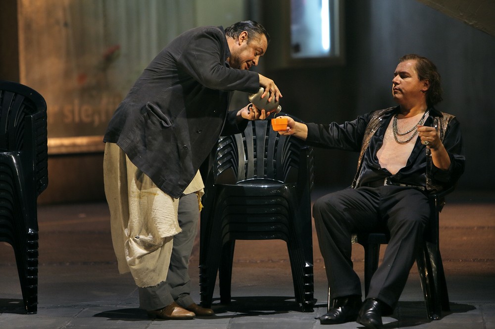 Castorfov Ring v Bayreuthe nie je zaručene ľahké sústo. Vybučať koncept, ktorý raz premyslene komentuje, inokedy rozvíja, alebo karikuje predlohu je však omnoho ľahšie ako otvorene a nepredpojato prijať pozvanie uvažovať o konfrontácii s nie práve jednoduchým dielom, ktorého incenácia stojí na pleciach talentovaného, zohraného, inteligentného a sympatického ansámblu. Po tretej časti Ringu a po Tristanovi musím skonštatovať, že v Bayreuthe sa po niekoľkých rozpačitých rokoch už opäť stretla svetová špička wagnerovského spevu. A tí si takýto prístup publika rozhodne nezaslúžili. Už keď pre nič iné, tak aspoň z elementárneho rešpektu pred ich umením. Keď som sa asi sedemdesiatročnej dámy za mnou opýtal, prečo tak hlasno bučí, celá rozdychčaná v afekte len odpovedala, že „takáto sračka rozhodne nebola zámerom skladateľa“. Až potom, čo som jej odpovedal v zmysle, „že aj keď vidno, že má na pleciach už nejeden rôčik, nepredpokladám, že poznala Richarda Wagnera osobne“, som si uvedomil, že som ju mohol azda aj uraziť. Nech. Moja uštipačnosť bola pomstou za to, že sa po celý čas ovievala vejárom s hrubými kosticami, ktorých sonórny klepot vynikal najmä v tichších pasážach takmer štvorhodinového, divadelne napínavého večera.