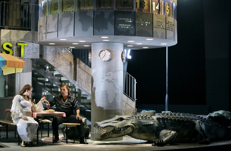 Počas náletov na Berlín v druhej svetovej vojne trafila jedna z bômb i zoologickú záhradu. Unikajúce exotické zvery sa rozbehli do ulíc horiaceho mesta. Reptílie s prastarým pôvodom si vtedy cez kanalizáciu obsadili práve Alexanderplatz. V Castorfovom poňatí pôsobia ako predzvesť démonických síl, ktoré pretnú puto medzi Brünnhilde a Siegfriedom v Súmraku bohov. Pri svojom blúdení po Alexanderplatzi zožerú i lesné vtáča. Z krokodílieho pažeráka ho však Siegfried vyslobodí a Waldvogel sa mu vrúcne vrhne okolo krku. Brünnhilde to nestrpí, oddelí ich od seba a sama vlastnícky objíme svojho hrdinu.