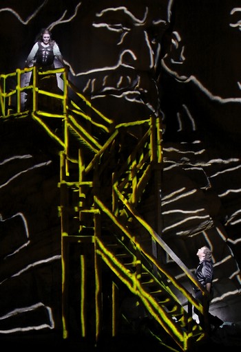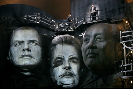 Les, v ktorom Nibelung Mime vychováva Siegfrieda inscenujú Castorf s Denićom pod kamenným bralom akéhosi Mount Rushmore, do ktorého sú však namiesto amerických prezidentov vytesané hlavy komunistických vodcov Marxa, Lenina, Stalina a Maa.