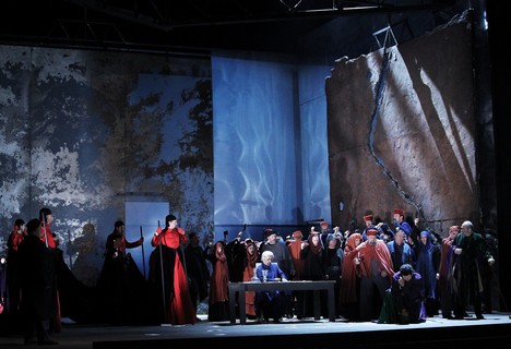 Simon Boccanegra je historická operní freska a udělat ji v nápaditě jednoduché a funkční scéně Ralpha Koltaie historizujícím režijním rukopisem musí být radost, máme-li k dispozici odpovídající obsazení a věnujeme-li jí veškeré tvůrčí úsilí. Za režiséra Davida Pountneyho inscenaci připravil v Praze jeho spolupracovník Robin Tebbutt (David Pountney přijel až na závěrečné zkoušky) a obsazení bylo šito horkou jehlou (čípak horká jehla to konkrétně byla?). Pro tuto operu, jak názorně předvedly obě premiéry, nemáme v Národním divadle odpovídající sólisty – proč ji tedy uvádíme? Patrně proto, že musíme dodržet smlouvu, kterou uzavřeli naši předchůdci.