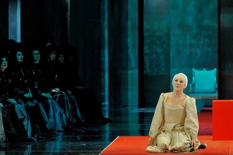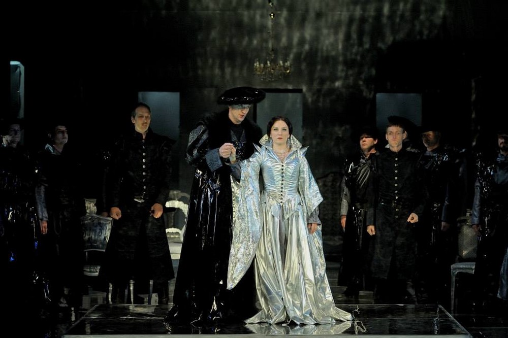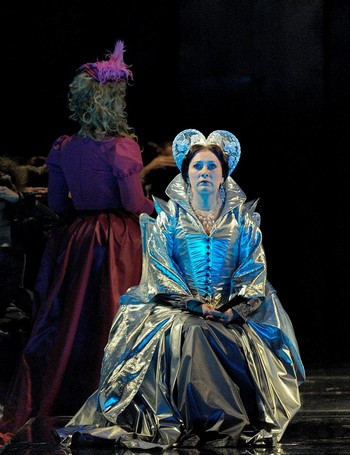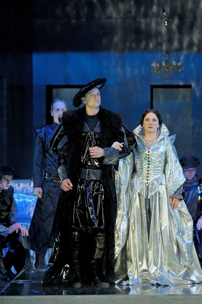 Šokujúci je už prvý pohľad na javisko. Otvorené do hĺbky, kolorované do modra, lesklo elegantné, ale aj výrazovo viacznačné. Na jeho pozadí sa vynímajú zaujímavo tvarované a v použitých materiáloch moderne pôsobivé kostýmy protagonistov. Zbor v jednotnom oblečení vytvára masu, ktorá obklopuje dramatické akcie a zmysluplnými aranžmánmi citlivo do nich vstupuje. Nie je ani statický, ani prehnane akčný. Nájsť takúto optimálnu mieru včlenenia zboru do diania je hodné zvláštneho uznania. Scénografia mení jednotlivé obrazy tak hladko a zároveň kontrastne, že v kombinácii s použitým kolorovaním a ilumináciou kreuje priestor, z ktorého vanie rovnobežne duch anglických dejín aj súčasného divadla. Ivan Krejčí veľmi intenzívne pracoval so sólistami na formovaní profilov postáv a vzťahov. Neimplantoval však automaticky a bez pokory voči nesmierne náročným vokálnym partom prvky činoherného divadla. Dokázal herecké akcie a city vtesnať do mantinelov primárne opernej postavy. Pridanou hodnotou bolo mladé, pátosom a klišé nezaťažené obsadenie.
