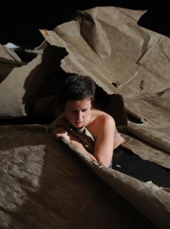 Do ticha ztemnělého sálu se ozývají šustivé zvuky, které vydává tanečník plazící se po zemi pokryté vroubkovaným papírem. Jeho pohyby zanechávají stopy jako šlápoty zaprášených nohou v čistém domě. Kdo je tento vykořeněný muž? To se asi nedozvíme, ale když se objevují další protagonisté, dostává inscenace větší dynamiku. Druhý tanečník, v tričku s obrázkem veselého indiána, budí dojem cizince v nové zemi. Žena v neforemné mikině vyzařuje malátný sentiment.