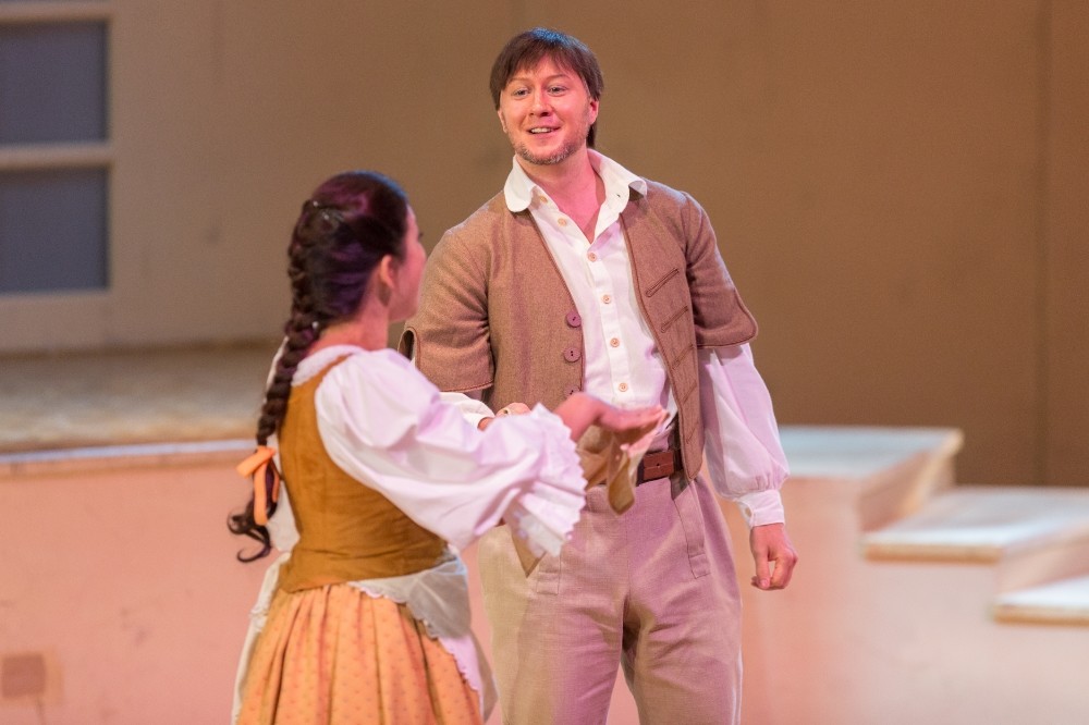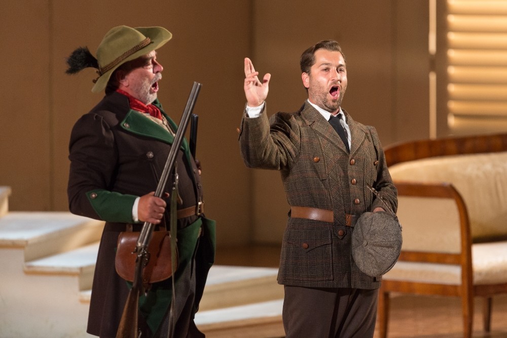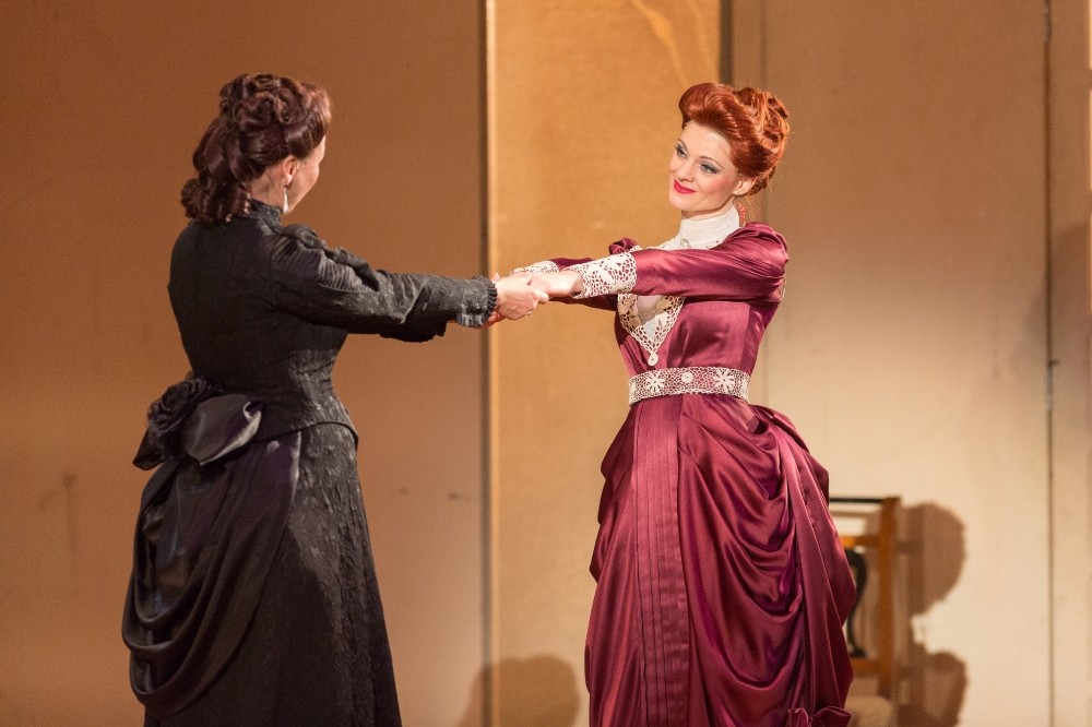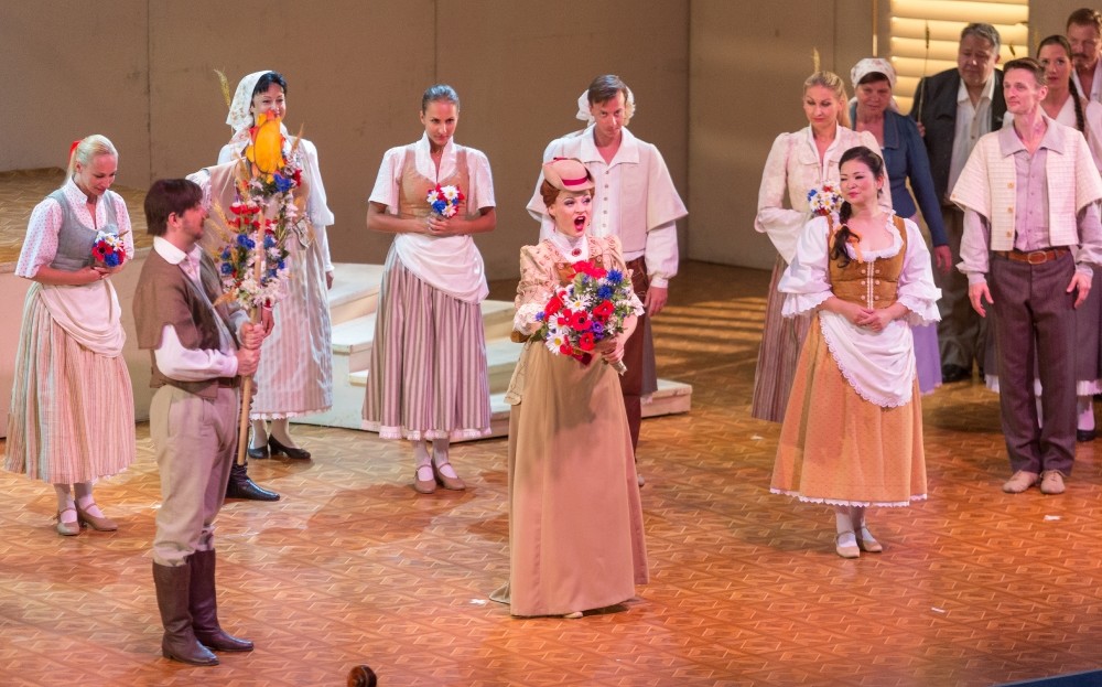 Karolina Marie Fajtové je půvabnou mladou ženou, s hezky kulatými, volnými výškami, s nimiž si dokáže dynamicky pohrát decrescendy z forte do pian, nebo naopak z mezza voce rozvinout tóny do prostorově nosného zvuku. Jen srozumitelnost slova poněkud vázne, pouze momenty bez doprovodu orchestru přejí tomuto aspektu. Podobně ovšem i Dana Burešová v Anežce. Zvládá rozsah role i instrumentálně plastické vedení frází báječně, ale rozumět je poměrně málo. A tak se osvědčuje čtecí zařízení. Tschechisch? Und warum tschechisch? Nu právě proto! Němci se diví a Češi na české opeře hezky čtou a čtou.