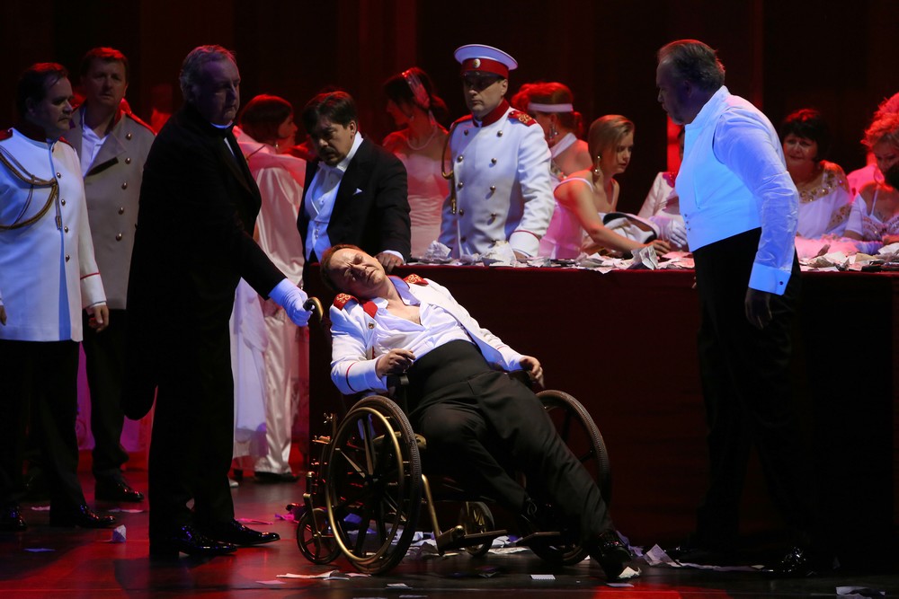Postava Tomského je Sergejovi Tolstovovi priam šitá na mieru. Jeho tmavý barytón znel tento raz plnohodnotne aj vo vysokej polohe, rolu mal výrazovo do detailov premyslenú a bol natoľko uvoľnený, že „pastiersku hru“ aj s vtipným nadsadením zahral. O dokonalej ruštine je vari zbytočné hovoriť. Obsadenie Jána Ďurča sa ukázalo ako vyslovený omyl. Jeho hlasu chýba jadro a farba, vibrato je také veľké, že budí pocit intonačného vákua. Výkon Jeleckého (Pavol Remenár) je nehodnotiteľný, keďže podľa vložky v bulletine spieval v indispozícii, aby umožnil premiéru. Zvláštne je akurát to, že sa tak stalo pri trojnásobnej alternácii tejto úlohy. Daniel Čapkovič nastúpil až v nedeľnej premiére a napriek tomu, že part vyspieval, neupútal lyrickou eleganciou či noblesnou frázou, ktorú si neľahká ária Jeleckého nárokuje.