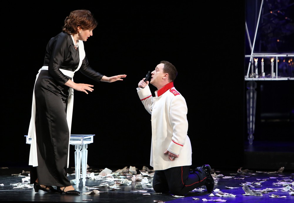 Na javisku bratislavského „nového“ divadla vznikla inscenácia stavaná na nie až tak častom konsenze celého realizačného tímu. Koncepcia tvorcov optického obrazu je inšpirovaná primárne hudobnou podstatou, nič cudzorodé do nej nevnáša a umne sa s ňou prelína. Naopak, Čajkovského partitúra sa neprieči nekonvenčnej kresbe javiskových situácií, ktoré nie sú zasadené do predpísaných historických reálií. Ako však ukázali výstupy z dvoch rozlične obsadených premiér, čerstvá Piková dáma je aj ľahko zraniteľná. Málokedy sa stáva, že všetko, čo v istej spevácko-hereckej konštelácii do seba dokonale zapadá, v inej jednoducho nefunguje. Alebo – jeden falošný herecký detail, neprimerané gesto – a vypointovaná situácia minie cieľ. Boli sme teda svedkami dvoch premiér jednej inscenácie s dvoma odlišnými tvárami.Režisér Marián Chudovský nie je žiadnym lámačom rekordov v stavaní predlôh na hlavu, ani vyznávačom povrchných aranžmánov. Na Slovensku nerežíroval pomerne dlho (čo napokon, žiaľ, platí aj pre niektorých iných domácich režisérov), takže jeho presun z kresla generálneho riaditeľa za režisérsky pult bol nielen svojím spôsobom rizikový, ale hlavne napäto očakávaný. O to väčšmi, že ostatná bratislavská inscenácia (Verdi: Dvaja Foscariovci) nepatrila k najvydarenejším a v repertoári prežívajú len jeho staršie práce.