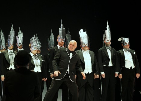 Antiformalistický jarmark byl v režisérském pojetí jednodušší, stejně jako je samo dílo. Všichni čtyři komunističtí pohlaváři, tak jako sbor, byli oděni do tmavých obleků, po prsa postříkaných bílou barvou. Vypadali stejně jako „busty“ sedící v řadách za nimi, kam se ti, co dokončili svůj projev, zařadili a splynuli s neživými hlavami. Členové pěveckého sboru stáli nehnutě za přednášejícími, jako sochy. Vtipná symbolika nesvobodného režimu jako z Orwellova románu 1984.