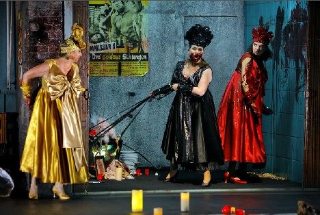 Tak ako v Rýnskom zlate, aj v Súmraku bohov jazdia rýnske rusalky na čiernom mercedese.