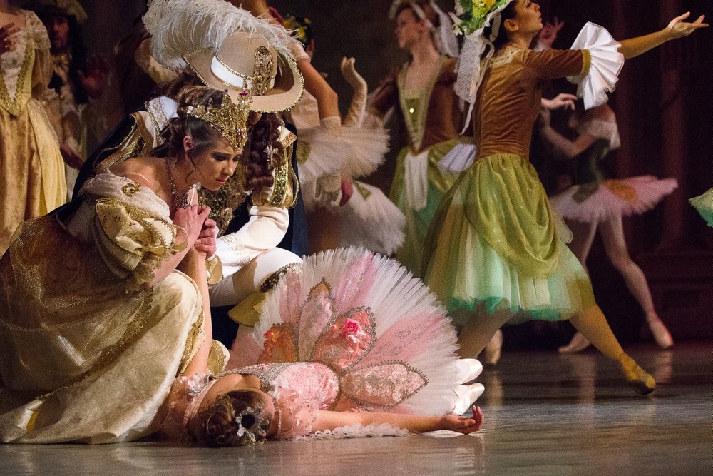Nově jsem ještě pojala úvod do prvního jednání. Původní verze po otevření opony začíná valčíkem. Já jsem využila už předehry k tomu, aby se ukázalo, jak se lidé chystají k oslavě Růženčiných narozenin. Začlenila jsem do ní například pletařky, aby byl prostor i pro herecké akce, aby nešlo jen o „tanec pro tanec“. Samozřejmě jsem také musela upravit choreografii Carabosse na zámku.