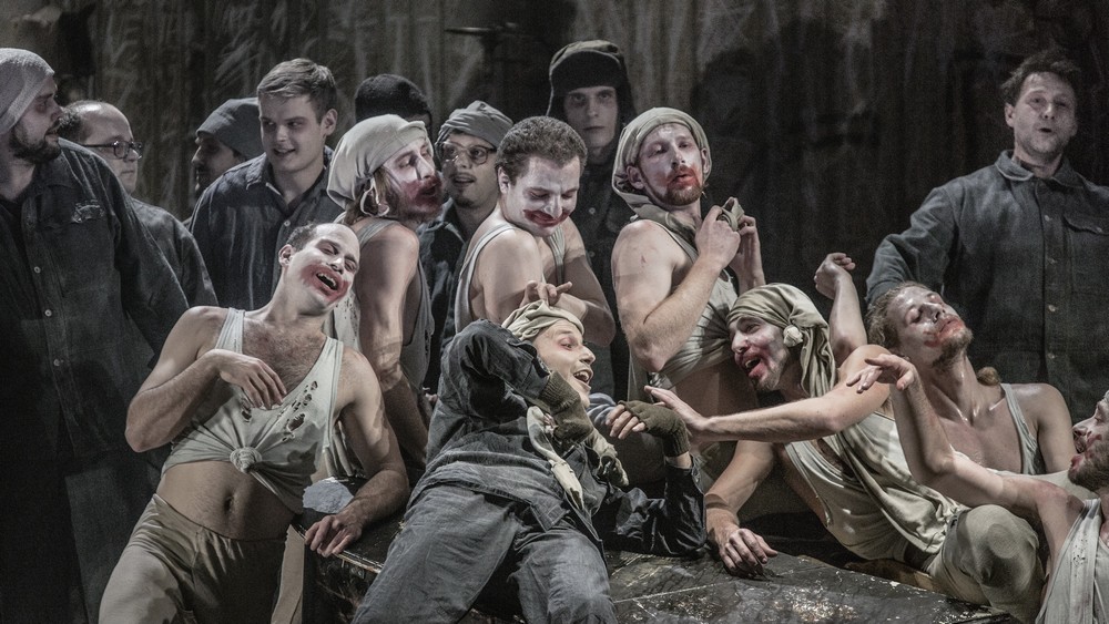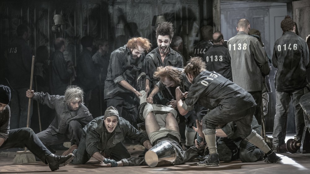 Zajímavým inscenačním prvkem je také zařazení skupiny mimů, kteří hrají skupinu vězňů a kteří se realizují zejména ve druhém dějství během vězeňského divadelního představení. Představují ženy, po kterých vězni touží. Jejich divadelní představení je plné lascivního vězeňského humoru, snad až zbytečně moc. Inovativní je i obsazení muže do role Aljeji, i když s tímto problémem se v minulosti někteří inscenátoři vypořádali podobně.