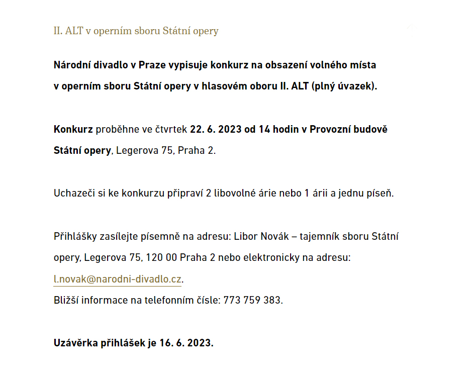 Čtení Státní opera vypisuje konkurz do sboru – II. alt