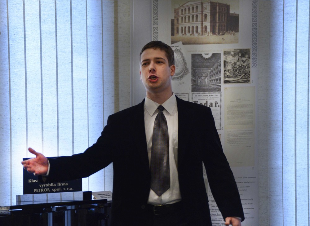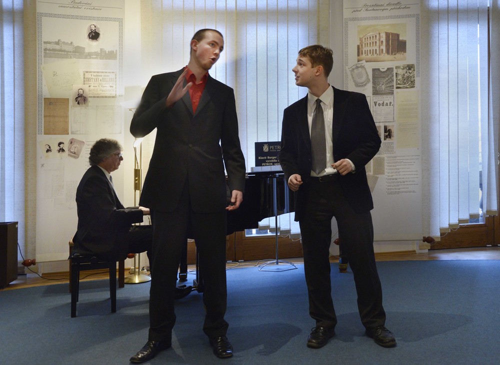 Najít útočiště před netypickým jarním chladem v krásné expozici Musea Bedřicha Smetany na Novotného lávce v Praze a ještě si přitom poslechnout smetanovské vokální melodie, čeho si více přát! Oba sály v prvním patře muzejní expozice skýtají uprostřed zajímavých exponátů možnost nejen pořádání vernisáží (před týdnem byla otevřena výstavka kreseb a akvarelů vytvořených příslušníky rodiny velkého skladatele), ale také komorních koncertů. Ten poslední byl věnován operní tvorbě skladatele a byl plně v režii aktérů pěveckého oddělení Pražské konzervatoře.Program byl neobyčejně pestrý a bohatý. Vždyť účinkovalo magických dvanáct posluchačů třetích až šestých ročníků tohoto váženého a renomovaného ústavu. A když už jsme u těch číslovek, tak hudebních čísel bylo patnáct! Zní to neuvěřitelně, ale program svojí bohatostí byl jako v nějakém monstrózním koncertu s tím rozdílem, že prostory muzea dovolují pouze klavírní doprovod. Ten obstaral na vysoké úrovni a s citem pro různé hlasové dispozice účinkujících prof. Pavel Matyáš. Pokud se týká obsahu, byla zastoupena všechna skladatelova operní díla (vyjma Violy) a to již je samo o sobě ojedinělé. Po krátkém uvítání ředitelkou Smetanova muzea paní Dr. Olgou Mojžíšovou a představení koncertního programu vedoucí pěveckého oddělení konzervatoře prof. Jitkou Soběhartovou, nastoupil student třetího ročníku Martin Kalivoda (prof. Jiřina Marková), který interpretoval písně z cyklu Večerních písní. Byla to Hej, jaká radost v kole a Nekamenujte proroky, v kteréžto písni pohotově zaskočil za onemocnělého kolegu. Následovalo vystoupení sympatické brunetky Elišky Sedláčkové, studentky 5. ročníku (prof. Jiří Kubík). Ta měla nastudovánu árii Děčany z Braniborů v Čechách. Další čas byl věnován dílu nejpopulárnějšímu, hudebním ukázkám z Prodané nevěsty. Jako Mařenka se představila drobná blondýnka pátého ročníku Tereza Machačová, kterou vede také prof. Kubík. Zdatně si vedli představitelé Kecala – Jan Ericsson (prof. Jitka Soběhartová), kterému je zřejmě operní zpěv bližší, nežli smyčcové nástroje jeho známých rodičů. Vaška s přirozeným komickým talentem předvedl Jan Bochňák (prof. Jiřina Marková). Tento posluchač 4. ročníku má s rolí již jevištní zkušenosti z účinkování v Prodané nevěstě v provedení Dětské opery Praha. Z opery Dalibor jsme pak uslyšeli árii krále Vladislava z prvního dějství v podání Jiřího Poláčka (5. ročník – prof. Jiří Kotouč). Atmosféru naplněného prostoru osvěžila, nejen svým vzhledem ve vkusné červené róbě, Monika Sommerová příkladně podanou árií rozverné Karolíny ze Dvou vdov. Je to jedna z nejoblíbenějších árií této posluchačky pátého ročníku u prof. Moniky Brychové. Monika Sommerová ji mimo jiné zpívala na loňské mezinárodní pěvecké soutěži Antonína Dvořáka v Karlových Varech a byla za její interpretaci odměněna zvláštním uznáním. Pak jsme se na chvíli přenesli do pomyslné světničky podještědské chaloupky, kde u kolébky sedící Vendulka zpívá malému děťátku známou ukolébavku Hajej můj andílku… z prvního dějství Hubičky. Mladičká Radka Dolečková ze třetího ročníku prof. Valentina Prolata sice při přednesu líbezné melodie musela stát, ale svým procítěným zpěvem publikum upřímně dojala. Z tohoto díla vzápětí Barče skřivánčí písní vnáší toužený jas a teplo prostřednictvím výborného podání Moniky Sommerové. A z rozjásaného mládí se přeneseme do nejednoduchého citového života panny Rózy z opery Tajemství. Tu v árii Tak plane láska žhavá… svým příjemně temně zabarveným altem ztvárnila posluchačka posledního ročníku konzervatoře Ludmila Hudečková, studentka prof. Jiřiny Přívratské. V opeře Čertova stěna se vyskytuje nevelká mezzosopránová role Záviše, synovce rožmberského vladaře Voka Vítkovce. Její interpretací byla pověřena Alžběta Vomáčková, která je s uváděnou árií (normálně se v jevištních provedeních díla nehraje) dobře seznámena a úspěšně ji například zpívala právě na půdě Smetanova muzea v pořadu o Čertově stěně, uvedeném v říjnu minulého roku. Představitelka této kalhotkové role, posluchačka šestého ročníku pod patronací prof. Brigity Šulcové, se sice představila v elegantních šatech, ale chlapecký kostým by jí na živé scéně zajisté slušel také. Koncert se však pomalu počal blížit ke svému finále. To bylo z části tvořeno operou Libuše. Myslím, že všichni přítomní posluchači byli mile překvapeni, jak se s náročnou árií vznešené kněžny Bohové věční… vyrovnala Michaela Zahradnická, posluchačka šestého ročníku. Její nosný dramatický hlas s krásně zněle tvořenými spodními polohami a impozantní operní zjev jí přes její mládí možná pro podobné úlohy předurčují. Myslím, že její profesorka, paní Brigita Šulcová, na ni může být pyšná. Po takovém výkonu své kolegyně to neměl Jiří Poláček s árií Přemysla Ó vy lípy… lehké. Po slavnostní náladě navozené právě tímto slavnostním dílem, byl nejen příjemným odlehčením, ale také hudebním překvapením vysoce kvalitně sezpívaný tercet Vendulky, Martinky a pašíře Matouše z druhého obrazu Hubičky v podání Michaely Zahradnické, Ludmily Hudečkové a Vladimíra Müllera. Posledně jmenovaný vystoupil na podvečerním koncertu poprvé. Je z pátého ročníku a učí jej prof. Valentin Prolat. Na úplný závěr se opět postarali o milý zážitek Martin Kalivoda a Jan Bochňák, herecky brilantním vystřihnutím slavného duetu Kecala a Jeníka z Prodanky. Zasloužený