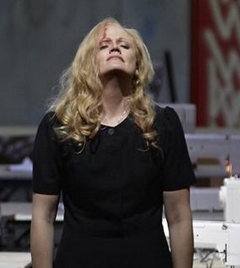 Opísať všetky scény do detailov by potrebovalo mnoho strán. Spomeniem aspoň niektoré silné miesta. Najväčším vývojom prechádza Jenůfa. Z ľahkovážnej a frivolnej dievčiny (v rifľovej sukni, červenom tričku a čižmičkách, s cigaretou v ústach) sa mení na odvrhnutú matku, ležiacu v ružovom pyžame na kope handier. Počas modlitby ju Kostelníčka prezlieka do čiernych smútočných šiat (to ešte nepozná osud svojho dieťaťa), až napokon v továrni, za šijacím strojom (pri vedľajšom sedí Laca) si na znak perspektívneho spoločného vzťahu hádžu po sebe čerstvo vyrobené tričká. Druhou veľkou postavou je Kostelníčka. Štíhla, elegantná dáma v čiernom nohavicovom kostýme nepôsobí mrazivo autoritatívne, no jej vyznanie je tvrdé. Mení sa v druhom dejstve. Je to zmes najprotichodnejších duševných stavov (Jenůfu kŕmi liekmi, túli si ju k sebe), pred Števom sa vyzlečie z kostýmu a zúfalo, v nádeji že prejaví záujem aspoň o syna (kolísku schová pod stôl), sa naňho vrhá oblečená len v čiernom kombiné. Po Lacovom odchode pominutá zmyslov vykoná v afekte vraždu novorodenca priamo na javisku. Scéna sa mení načerveno, Kostelníčka zmýva z vražedného stola krv a s mŕtvolkou zuteká.