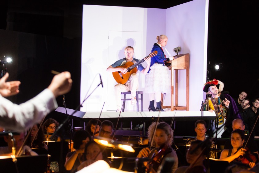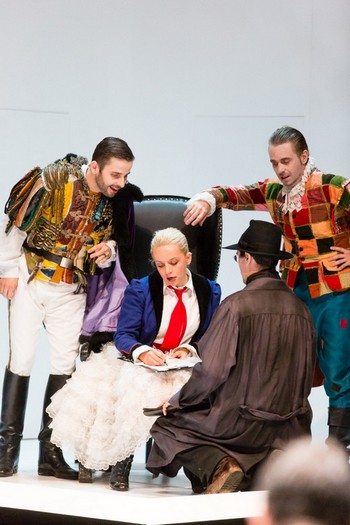 Styriarte neponechalo nic náhodě a vědomo si blížícího se rossiniovského šílení v roce 2016, kdy uplyne rovných dvě stě let od nepříliš úspěšné římské premiéry Lazebníka sevillského, nastudovalo Rossiniho operu, ve štýrskohradeckém případě spíše zpěvohru, již letos, a to v německém překladu Ignaze Kollmanna, vyhotoveném pro štýrskohradeckou premiéru a první nastudování Lazebníka v německy mluvících zemích v roce 1819 (mnichovská premiéra na Nový rok 1819 proběhla v italštině). Styriarte tak kráčí nevyšlapanou cestou a nejenže – pokud to faktura díla umožňuje – uvádí opery v jazyce obecenstva, ale rovnou v dobových překladech, zasutých často v archivech, jako tomu bylo v případě Harnoncourtova nastudování Prodané nevěsty v roce 2011 ve Smetanou zadaném překladu Emanuela Züngela. (Běhá mi mráz po zádech, když si vzpomenu na vyjádření uměleckého ředitele Opery Národního divadla v Praze Petra Kofroně, že je třeba přebásnit většinu českých oper devatenáctého století, aby mohla být vůbec aktuálně uvedena na scéně prvního operního domu českých zemí…) Po téměř dvou staletích tak Lazebník sevillský promluvil ke štýrskohradeckému publiku jeho jazykem, i když občas na úkor legatového tahu italského originálu. Že nebylo německé libreto otištěno v programu, natož promítáno titulkovacím zařízením, bylo nepříjemnou pihou na kráse trojice festivalových produkcí, pod nimiž byl podepsán vedle Harnoncourta a Jordiho Savalla třetí stabilní festivalový dirigent, lidsky a umělecky sympatický Mnichovan Michael Hofstetter.