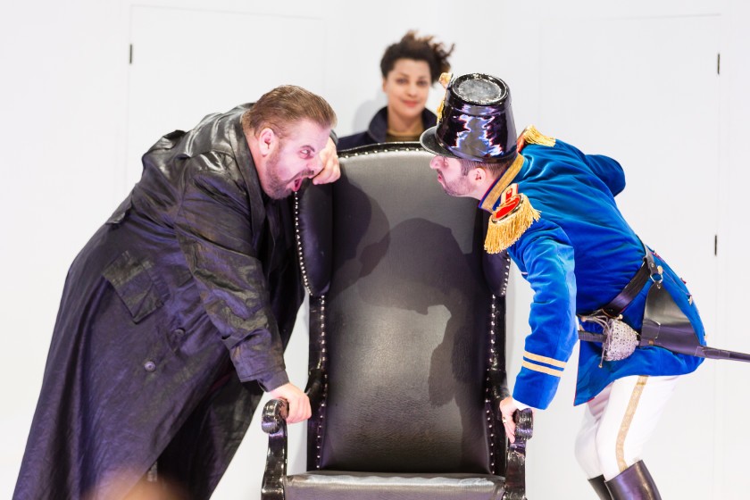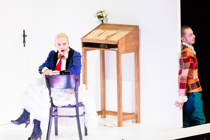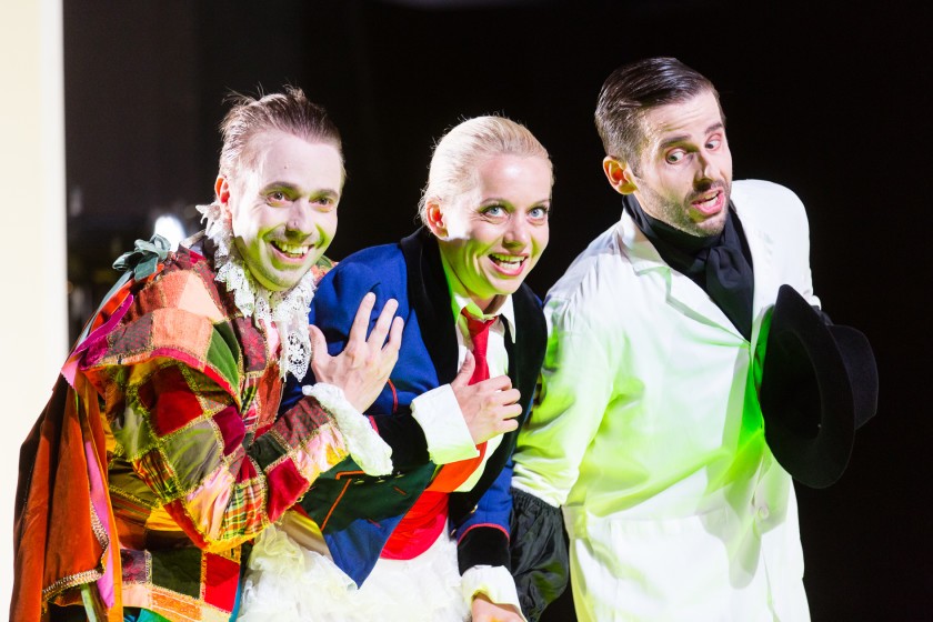 Pěvecké týmy operních produkcí styriarte obvykle patří do stáje Formule 1 a v podstatě nejinak tomu bylo i letos: role učitele zpěvu byla svěřena basistovi Josefu Wagnerovi, který mi hlasovým projevem i jevištním zjevem tolik připomínal nejlepší léta Martina Gurbaľa – vysoký ramenatý chlap pevného a rovného hlasu. Ideální řešení. Spokojen jsem byl v podstatě i s mladším Bartolem Stefana Sevenicha z berlínské Komické opery, jehož hlas bez manýr úspěšně vzdoroval stereotypním nástrahám role. Jeho menší volumen charakterově korespondoval s hlasy ostatních účinkujících, občas jsem si však přál, aby přece jen zaburácel jako jeho slavní předchůdci. Miljenko Turk v roli Figara disponuje disciplinovaným, technicky vytříbeným hlasem, postrádám v něm ovšem osobitost, a že vedení festivalu na webových stránkách umístilo odkaz na německou verzi slavné vstupní árie v podání Hermanna Preye, bylo spíše negativní reklamou. Turk mě bezezbytku nepřesvědčil ani jevištně, ale léta zkušeností s touto rolí mohou ze stále mladého pěvce se salcburskými zkušenostmi učinit Figara budoucnosti. Ve Štýrském Hradci nejsou zrovna posedlí politickou korektností, s níž si na dnes neakceptovatelné imigrační téma zahrával režisér Philipp Harnoncourt v Rytíři Modrovousovi (scéna s Cikány), a tak se nebránili obsazení role služebné Marcelliny černošskou sopranistkou Bibianou Nwobilo, beztoho vyrostlou v Korutanech. Připadla jí poněkud nevděčná role zbytečného úvodního představení jednotlivých účinkujících a jejich rolí a úkol prosedět celé představení v rozložitém křesle pána domu. Půvaby Smetanovy Esmeraldy tentokrát neměla šanci rozvinout ani herecky, ani pěvecky, setkání s jejím hlasem jsou však vždy potěšením.