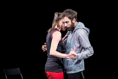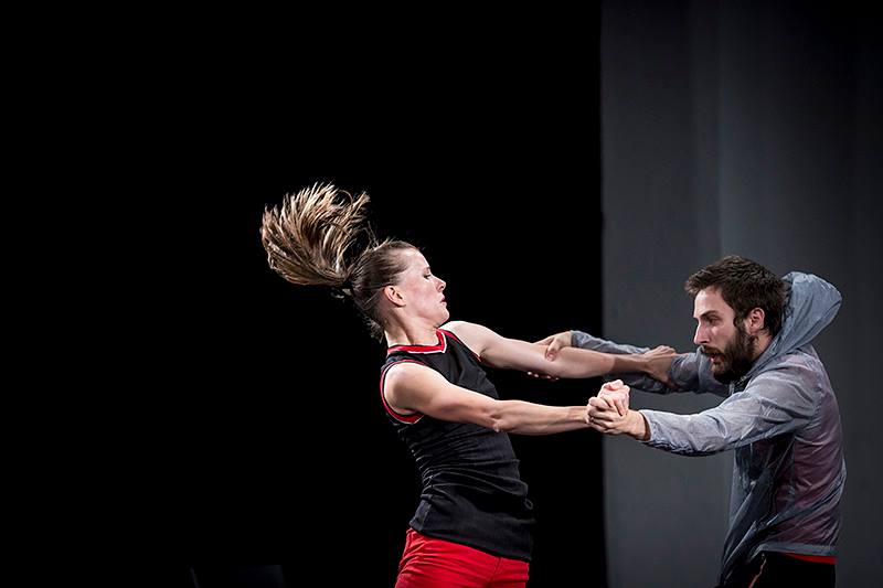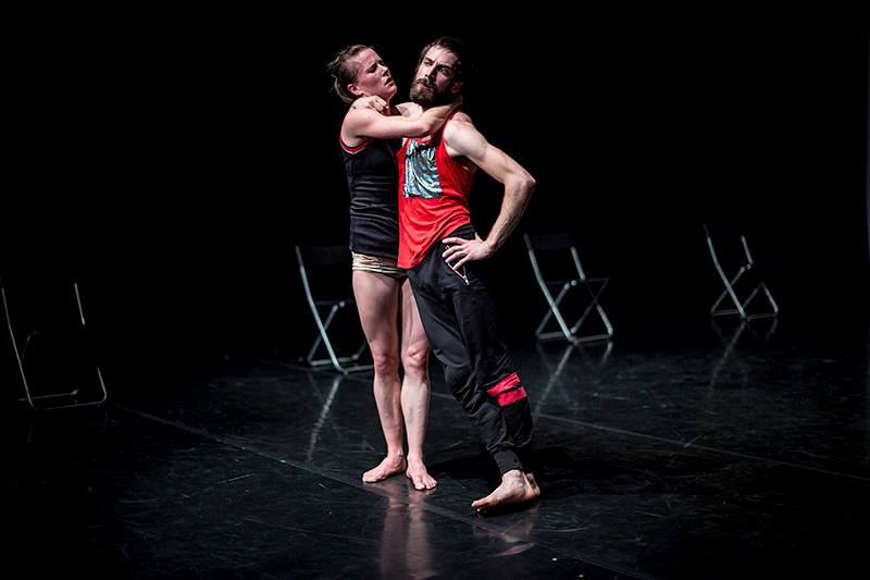 Obdivujeme především fyzickou zdatnost, s níž oba provádějí až akrobatické kousky tělo na tělo, pohyb plyne ve vynalézavých tvarech, aby vzápětí strnul. Tanečníci vzájemně manipulují svými těly, vyměňují si pozice a nekonečná vlna energie je udržuje stále v napětí. Přitom svůj němý výkon – prováděný na úplné ticho, které trvá skoro po celou inscenaci – doprovázejí pohledy, jež naznačují okamžiky, kdy se cítí jako hrdinové, kteří mají pod kontrolou celý svět. A přitom je jejich zápas stále nerozhodný. Scénu lemuje po stranách osm skládacích židlí a jedním z nejpůvabnějších vtipných okamžiků je scéna, v níž se jejich duet přesune na jednu z nich a naši hrdinové o ni zápasí.