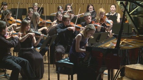 Úvodní lyrické téma klavíru přednesla velmi jemným, zpěvným úhozem, zvukově zcela vyváženým v každé z jednotlivých frází. Tento „lesk“ se jí však nepodařilo udržet i v dalších částech, kde zejména ve vyšší dynamice a v některých technicky náročnějších místech zněl nástroj ploše. Meditativní kadence v závěru první věty byla možná kvůli nervozitě zbytečně uspěchaná. Vyzdvihnout je však třeba technickou jistotu a především rytmickou přesnost, kterou bylo třeba ocenit hlavně v závěrečném Allegro Vivace. Doprovod orchestru mohl být v některých místech trochu citlivější; zejména v lyričtějších částech, kdy „odpovídal“ klavíru, bylo třeba většího piana. Celkově však vycházel sólistce vstříc, a to zejména díky dirigentce Miriam Němcové, která se na pianistku často ohlížela a citlivě jí dávala dostatečný prostor v místech, kde bylo potřeba jít s tempem více dopředu, či naopak zpomalit.