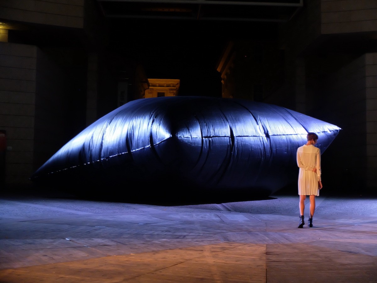 Zvětšenina nafouklého pytle na odpadky jako metafora současné civilizace