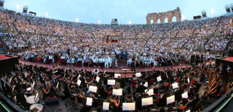Jedněmi do nebes vynášená a druhými opovrhovaná veronská Aréna se ani letos nemůže obejít bez takového trháku, jakým je Verdiho Aida. I turisté z českých autobusů posílali v sobotu večer domů nadšené esemesky, že diriguje sám Plácido Domingo. Taky tentokrát byly vyprodané ochozy (asi patnáct, podle jiných zdrojů až dvacet tisíc lidí) nadupány k prasknutí, a to i přesto, že ještě o půlnoci teploměr ukazoval kolem pětatřiceti stupňů.