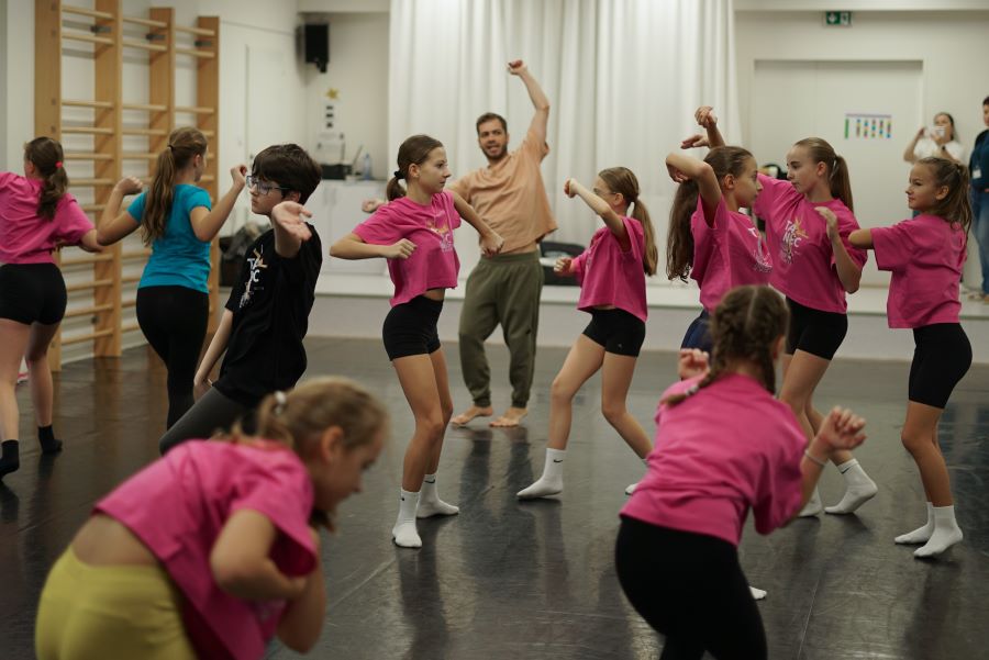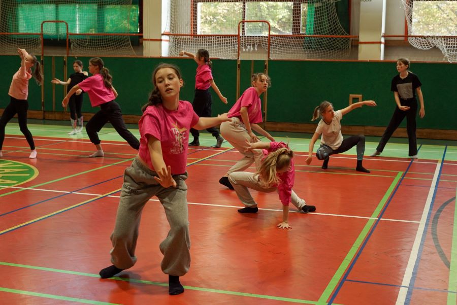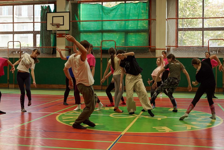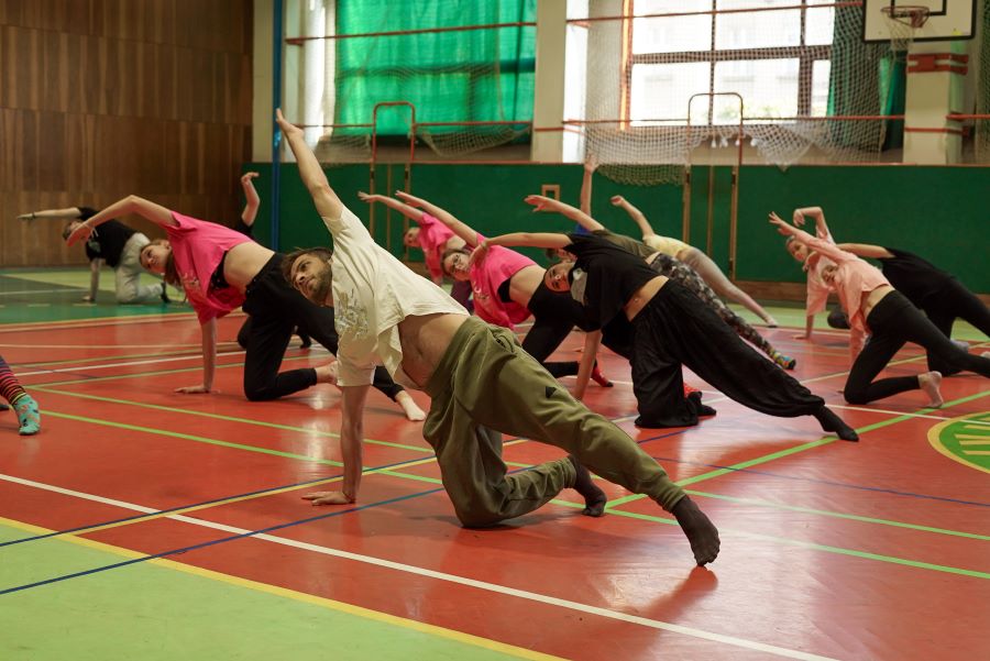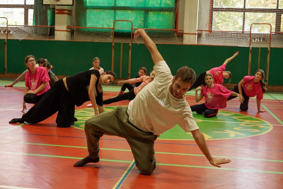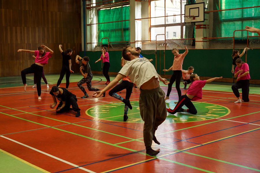 Už loni jsem žasl, jak zorganizovaně a profesionálně festival působí, nikoliv na úkor přátelské, takřka rodinné atmosféry. Po příjezdu mě vyzvedne řidička, odveze mě do příjemného hotelu, kde se do růžova vyspím. Ráno mě čeká opět na parkovišti. Lektorů je pět stejně jako štací, na každé nás čeká zhruba dvacet až padesát dětí, častěji spíš padesát. Začínám s menší skupinkou asi dvanáctiletých dětí. Před začátkem dostávám ještě dárkovou tašku, jejíž obsah mohl zkomponovat jen znalec tanečních potřeb: uvnitř je ručník, voda, ovesná tyčinka, tričko a obligátní láhev slivovice.
