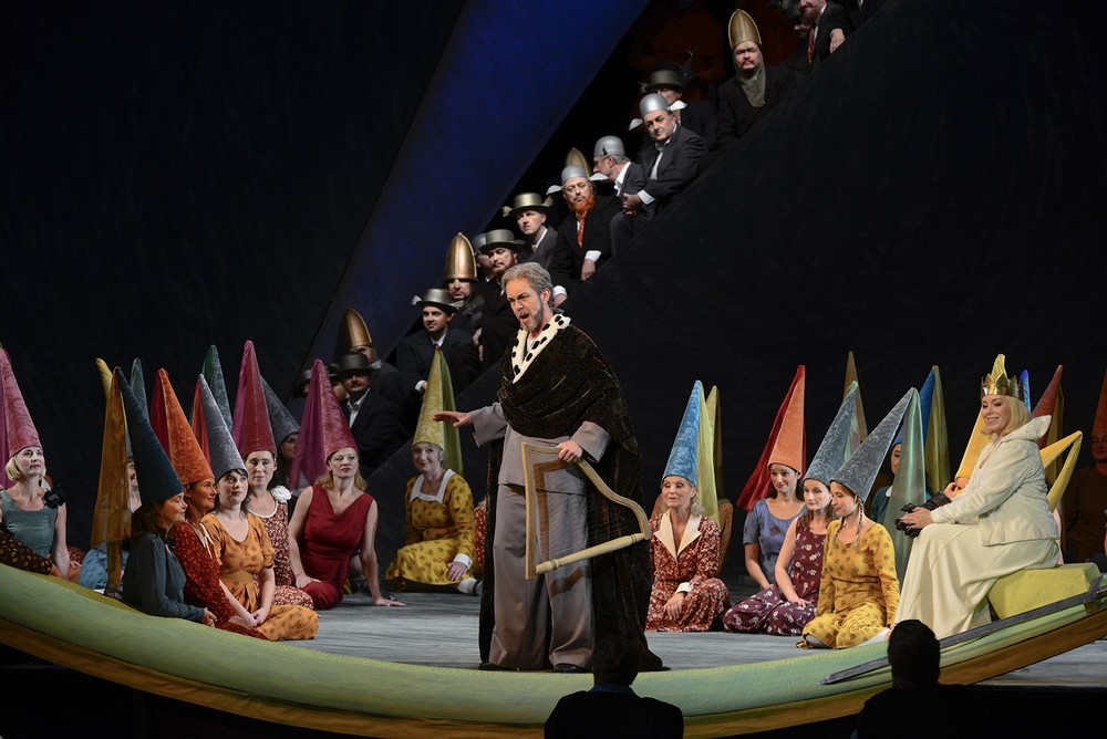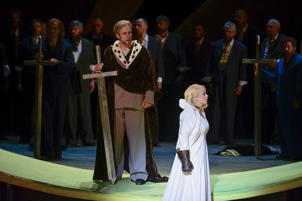 Vraťme se zpět na drážďanské jeviště. Po následném setkání s Tannhäuserem se Alžběta potkává se svým otcem, thüringenským landkrabětem Heřmanem. Zde se již plně může uplatnit svým krásným basem Georg Zeppenfeld, další ozdoba představení. Člen drážďanského souboru má za sebou právem světovou operní kariéru, zejména v dílech Richarda Wagnera. Namátkou vzpomínám na jeho bayreuthské vystoupení v roli Jindřicha Ptáčníka v Lohengrinovi před pěti lety, v Drážďanech zpívá třeba Dalanda v Bludném Holanďanovi, za zmínku určitě stojí i jeho Banquo ve Verdiho Macbethovi.