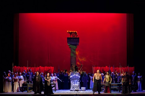 V našich operních luzích a hájích můžeme mít čím dál tím častěji pocit, že už nás jen máloco dokáže překvapit. Výměny ředitelů a uměleckých šéfů ze dne na den, překvapivé změny v hracích plánech, rušení představení před premiérou kvůli problémům s autorskými právy, to všechno už bohužel důvěrně známe. Většinou ale divák v důsledku podobných zvratů více ztrácí, než dostává. Jinými slovy: překvapení se konají mnohem častěji nepříjemná nežli ta druhá. Proto bychom se asi – a nejen u nás – divili, kdybychom se setkali s informací, s níž přišlo na počátku června renomované Teatro Lirico „Giuseppe Verdi“ v italském Terstu. Divadlo právě odehrálo vše, co bylo v sezoně slibováno (mimo jiné novou produkci Verdiho Korzára, který zde měl kdysi svou světovou premiéru, ale také Macbetha nebo Carmen) a jeho vedení to zřejmě přišlo líto. Neočekávaně totiž rozhodlo, že se ještě jedna zcela nová inscenace přidá… Verdiho dvousté narozeniny jsou zjevně příliš významnou událostí, než aby se s ní divadlo (které je navíc po oslavenci pojmenováno) jen tak rozloučilo, a tak padla volba na skladatelova Attilu.Nasazení uvedeného titulu právě v Terstu nepostrádá logiku. Opera byla poprvé uvedena 17. března 1846 v nedalekých Benátkách a po svém triumfálním přijetí se v tehdejším terstském Teatro Grande objevila už v září téhož roku. Zde se hrála nepřetržitě téměř tři měsíce, a jen za Verdiho života tu byla na programu ještě v šesti různých sezonách. Nadšení místního publika se patrně neopíralo jen o hudební kvality – trochu paradoxní příběh o barbarském nájezdníkovi Attilovi, který roku 452 doplatí životem na svou velkodušnost k římským zajatcům Odabelle, Eziovi a Forestovi, se odehrává ve starobylé Aquileii, tedy od Terstu co by kamenem dohodil. A samozřejmě i v tomto nejdůležitějším přístavu rakousko-uherské monarchie každý správný Ital pochopil všechny vlastenecké konotace, kterými se Verdiho opus nijak netají. „Měj si celý vesmír, ale Itálii nech mě,“ zpíval ve stěžejním duetu s Attilou římský vojevůdce Ezio, přičemž posluchači šíleli a pramálo je zajímalo, že ta krásná slova vycházejí z úst poměrně odpudivého intrikána a zrádce vlastního císaře…Navzdory změnám názvů i režimů (obojímu jsem se věnoval ve svém loňském článku o terstské produkci Veselé vdovy zde) se dnešní Verdiho divadlo na Verdiho náměstí vracelo k Attilovi i nadále. Dodnes se tak vzpomíná na rok 1966, kdy se zde pod taktovkou Oliviera de Fabritiis střetli „grande Attila“ Boris Christoff a „Ezio par excellence“ Silvano Carolli. Audiozáznam inscenace z roku 2000 se dokonce objevil na živé nahrávce firmy Dynamic, a určitě byl proto dobrý důvod: v hlavních rolích zde totiž vystupují Dimitra Theodossiou, Ferruccio Furlanetto, Alberto Gazale a Carlo Ventre. Pod pečlivým hudebním nastudováním byl tehdy podepsán uznávaný maestro Donato Renzetti, jehož současné vedení divadla povolalo pro svého „last minute Attilu“ i tentokrát.A určitě udělalo dobře. Při posledním z letošních pouhých tří (!) červnových představení se sice ve výkonu orchestru Teatro Lirico “Giuseppe Verdi“ di Trieste z počátku nedaly přeslechnout četné nepřesnosti v souhře, ale ty se dirigentu Renzettimu podařilo poměrně záhy odstranit, takže po zbytek představení bylo možné si vychutnávat dynamické hudební provedení rané Verdiho partitury v podání velmi solidního tělesa. Posluchač by si zajisté dokázal představit mnohem kultivovanější a dramaticky odstíněnější hudební výkon, nicméně už vzhledem k opravdu velmi netradičním podmínkám pro nastudování díla si orchestr i Donato Renzetti zaslouží slova uznání.