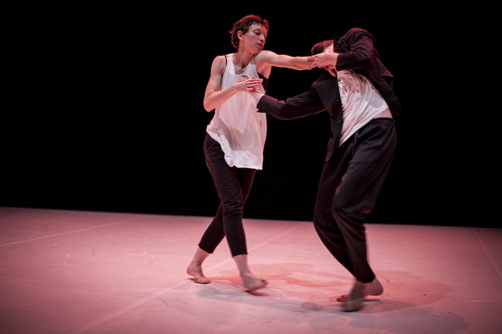 Ale všechno je jinak. Tanečníci se oblékají do černých kalhot a bílých trik, ovšem místo tance se jdou představit publiku. Česko anglické hlášky začínají budit na mnoha místech smích, takže už tušíme, že tahle performance smrtelně vážná nebude. Od této chvíle až do konce celého představení se naopak stane nepřetržitým proudem pohybu a interakce. Nejprve nenápadné svádění a pronásledování, potom dlouhé sbližování – jak dlouho trvá, než se dvě ruce setkají, aby se zpečetilo nerozlučné pouto? Je jednodušší dotknout se letmo těla, ale podat protějšku svou ruku – je závazek. Před očima diváků kmitají těla tanečníků v nejroztodivnějších pozicích, tu v symbióze, tu jeden před druhým na útěku a v odporu, který ale dlouho netrvá.