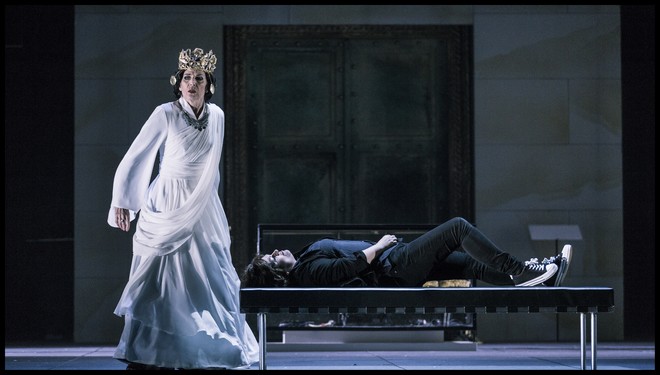 Velká představitelka světové opery Rosalind Plowright ztvárňuje neklidnou a neurotickou Klytaimnestru dokonalými hereckými prostředky a bytostně cítěným jevištním pohybem zpívající herečky i přehledem, kterým rázem získává okamžitou vizuální dominanci na scéně. Její hlas jsem ale zažil v lepší kondici na konci minulého roku v roli Mrs. Sedley v Brittenově Peteru Grimesovi v Theater an der Wien. V Straussově partu byly příliš slyšitelné nespojité rejstříky a místy malá znělost hloubek.