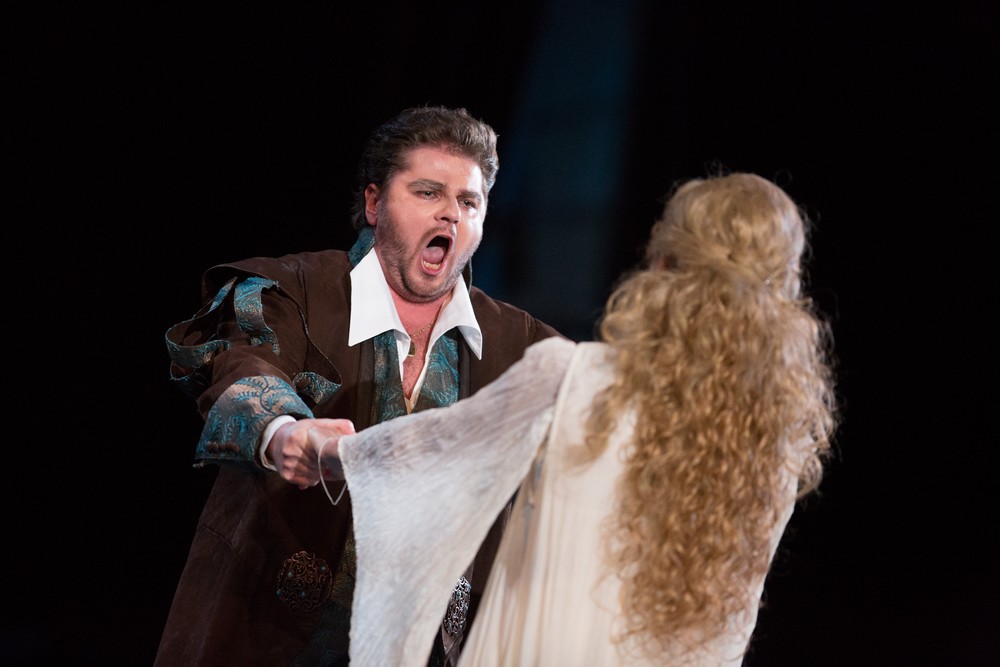 Z výkonů prvního večera imponoval velmi vyrovnaným pěveckým výkonem Richard Samek v roli Prince. Tato role se jakýmsi interpretačním zvykem v Čechách přisuzuje obvykle tenorům dramatičtějšího charakteru. Ono je to pragmatické. Role Prince je de facto A – tenor, nebýt onoho místa ve třetím dějství s vysokým cé v sextě na slovech „líbej mne líbej mír mi přej“, čímž to Dvořák této roli zkomplikoval. Nicméně Richard Samek se obdivuhodně přenesl i přes toto obávané místo se ctí, když díky umístění režií vpravo na rampě se nedá nic obejít, nic zastřít. Velmi hezky frázoval, jeho kantiléna již má velkorysé oblouky i dobrý tah. Bravo! Po nejistých začátcích pěvce zejména v rozsahu, kdy jsem sám pro sebe tiše klnul jeho škole, jak je nezodpovědná, když posílá do tvrdé praxe nedoškolené velké talenty, musím opakovat: Bravo! V Richardu Samkovi má česká opera výraznou posilu. Jeho spinto tenor je nosný v prostoru, zní barevně, příjemně, je mu rozumět každé slovo, nalezl technickou jistotu ve výškách. Jak se zdá, bude mu hlasově vyhovovat takzvaná „blachutovská“ oborová linie v české opeře.Ruský basista Oleg Korotkov je hlas velkého formátu, vyzpívá spolehlivě velmi exponované polohy Vodníka, jen mu chybí ona hakenovská otcovská vřelost, například fráze – „On že tě zavrh, jenž měl tě rád, musíš teď, musíš vytrvat“ – mi zní chladně, byť s pěknými basovými tóny. V nasazení na tónu É, navíc a capella, na slovech „prodána, prodána člověku“, jde dobře forte, mezza voce či přísněji dokonce piano Dvořákem v partituře předepsané již tolik ne, to má být na opakovaném nasazení tónu. Pravda, Antonín Dvořák toho chtěl příliš… Již Ital Apollo Granforte tvrdil Eduardu Hakenovi, že přece tohle není bas, ale baryton. Nemýlil se, partie je dost vypjatá především do výšek (Fis).