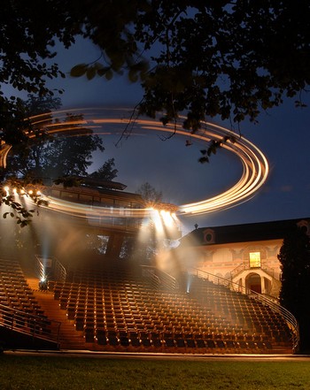 Architektonickou soutěž na novou podobu otáčivého hlediště v Českém Krumlově vypíše město České Budějovice, které stávající točnu vlastní, nejspíš na začátku září. Návrh zadání architektonické soutěže má přes dvacet stran a zatím byl projednán členy poroty nominovanými z České republiky, naposledy se zástupci komory architektů. Teď se čeká na nominaci ze strany UNESCO, které v porotě po poslední kontrolní misi požadovalo místo pro své zástupce. Soutěž bude otevřená, budou se hodnotit všechny návrhy. Vyhlašovatel soutěže k jejím podmínkám ale připojil stanovisko, že předpokládá, že by se nové otáčivé hlediště mělo vybudovat v barokní zahradě, ale mimo její osu. Komise UNESCO nedávno opět doporučila umístit scénu mimo zámecký areál, ale je pro ni přijatelné i řešení s hledištěm uvnitř zahrady. Svá představení před točnou v zahradě každý rok v letních měsících hraje Jihočeské divadlo.