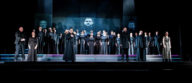 Sbor působil, až na obnažená sóla mužských skupin v polyfonii, celkem kompaktně, v necelé čtyřicítce zvládal dynamiku fortových míst pozoruhodně. Mile překvapil mužský sbor mezza voce a piany svého výstupu v druhém dějství, jen vnitřní harmonie se v této pianové dynamice poněkud vytrácela (sbormistr Martin Veselý).