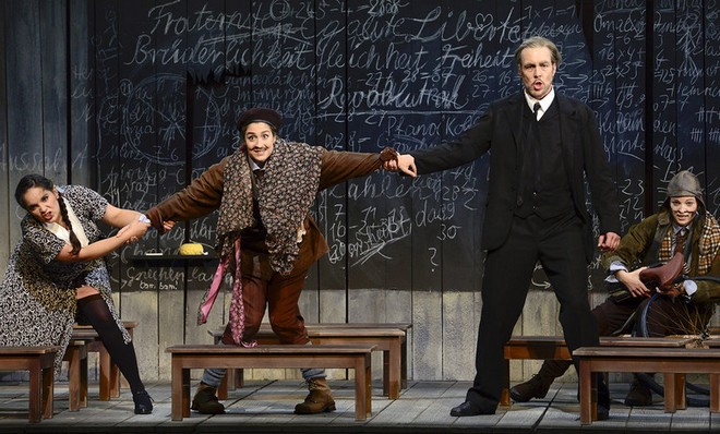 Režií této hudební romantické buffo opery byl pověřen intendant divadla v Dortmundu Jens-Daniel Herzog (v Drážďanech inscenoval Händelova Julia Caesara v Egyptě). Ten si s dílem proloženým složitým propletencem vztahů jednotlivých aktérů poradil s velkým smyslem pro humor. Vyžadoval od nich naprosto komediální a herecky dokonalé výkony a také je dostal. Tím vším sice poskytl divákům pěknou podívanou, ale nic víc. Lze vůbec od této milé frašky požadovat něco navíc? S režijním nastudováním více méně dobře korespondovala vkusná scéna Mathise Neidharda. V prvním jednání to byla poměrně malá nízká dekorace školní třídy, která se posunovala.
