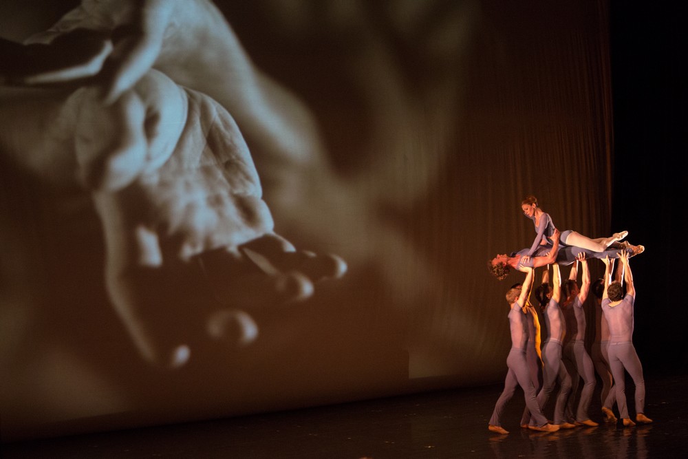 Protože Stvoření je má oblíbená skladba, těšila jsem se, jak scéna, světla a tanec umocní zážitek z Haydnovy hudby. Scholz pojal každou část oratoria jako zvláštní taneční číslo. Ale mám-li se přiznat, bylo toho najednou na pódiu nějak moc a vzájemně se tolik uměleckých výkonů spíše rušilo. Haydn není abstraktní hudba – zpívaná slova dle biblického textu mají svůj význam i konkrétní odraz v hudebním tvaru (například část Budiž světlo nebo popis nebeského ptactva a různých tvorů, někdy i zvukomalebně Haydnem ztvárněných). Sledujete-li zpívaný text a jeho posun do tónů a ještě máte vnímat jeho odraz v pohybu tanečníků, je to opravdu komplikované. Scholz jde většinou po struktuře hudby, takže se snaží zobrazit třeba kontrapunkt, střídání hlasů nebo duet či sbor v exponování příslušného počtu tanečníků, ale někdy jde i po významu slova (byt’se v programu tvrdí, že ne). Je tam vidět vzývání a klanění se Bohu, jsou tam taneční figury připomínající ptáky či různá podivná stvoření, je tam jednoznačná pasáž Milujte se a množte se. Takže ani ten balet nelze vnímat jako čistou abstraktní hru. Bylo to působivé – různé pyramidy z těl, hodně zvedaček, piruety, formace řad jdoucích proti sobě jako hlasy v partituře… Jakmile se ale člověk zaměřil na baletní sólisty (Klaudia Bittererová, Andrea Smejkalová, Eriko Wakizono, Jan Fousek, Michal Pimek, Ivan Popov), už měl dojem, že ne dosti sleduje výkon pěvců, dirigenta, sboru, nevnímá orchestr, text nebo promítanou kulisu z detailů lidských aktů na zadní stěně scény. Oratorium zkrátka není taneční hudba a příště bych si to zase dala radši zvlášť…+++