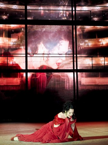 Ve svých výrazných rudých šatech by však tato půvabná dáma nepochybně opanovala celou plochu „největšího přírodního jeviště v Evropě“ i bez pomoci kamer – konec konců má bohaté zkušenosti s podobně velkolepou scénou zmíněného Mörbisch am See, kde účinkovala v produkcích Čardášové princezny, Cikánského barona, Ptáčníka a dalších klasických operet.