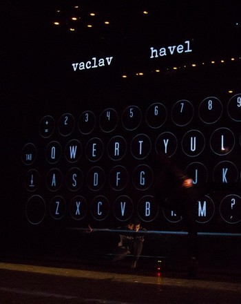 Postava u psacího stroje představuje Václava Havla, spisovatele. V naší inscenaci nejde o to převyprávět autobiografii politika a filosofa, nechceme zobrazovat jeho život, i když by to bylo také lákavé. Zabýváme se životem tvůrce, který bilancuje. Nemusí to být bilance na úplném konci života, ale za určitou uzavřenou životní etapou, ohlížení se za vlastním životem, vlastní tvorbou…