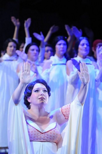 Samozřejmě, v tomto stylu opery, pokud inscenátoři nepostaví zajímavý pěvecký kvartet sólistů, jejich akcie poněkud oslabují. V žádném jiném operním stylu nestojí vše tolik na kráse pěveckých fondů, jako právě v atraktivní epoše neobelcanta. V tomto bodu se ale ukázal trochu otazníček třetí plzeňské inscenace poválečné epochy. Možná, že dobře míněná obrovská propagace sopranistky Luisy Albrechtové vytvořila zdání jakéhosi objevu velikého formátu. To se však již na vstupním koncertě v září zcela nenaplňovalo. Premiéra tato očekávání nenaplnila rovněž. Poněkud jednostrunný výraz a přílišná míra patetizace působí v dojmu celku méně přesvědčivě. Častá piana by byla půvabná, první bych jim aplaudoval, kdyby nestála často spíše na hraně markýračního charakteru tónu, který se barevně od plné rezonance liší. Ale musím vyzdvihnout velkou árii ve scéně u Nilu, kterou vyvrcholila znamenitě na lehce tvořeném vysokém cé („no, mai piû, non ti vedro“) a pianově nasazeném následném áčku závěru této árie („oh patria mia, mai piû, ti rivedrò“).