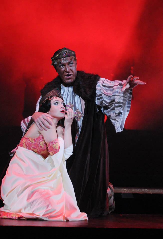 Píši to proto, že propagace zdůrazňovala mimořádný zjev Aidy, jaký snad nemá sobě rovna, jiné aspekty ani tolik ne. Tenorista Paolo Lardizzone nám naopak ukazuje, jak lze být hrdinným rekem v opeře s nejmenší a nejdrobnější postavou, jakou jsem kdy v roli Radama zaznamenal. Jak vidět, moderní operní divadlo současnosti má stále své limity, tak jako mělo v minulosti. A není to tak dávno, co proběhla na Opera Plus diskuze po přenosu z Met kolem nadváhy Johana Bothy coby Otella… Vůči zjevu pěvce byla dost netolerantní. Jak vidět, ani Plzeň nemůže vybírat hrdinného tenora z dlouhé řady pěvců, schopných vyzpívat roli Radama a zároveň mít činoherní či snad filmový zjev. Vida, ale přesto přemohl fyzicky mohutného krále Amonasra a přivedl králi egyptskému násilím zbytek rozprášeného vojska, v počtu jen pěti zbitých otroků. Rossiniho bonmot, že operní pěvec rovná se hlas, hlas a za třetí opět hlas, platí i nadále. Pěvecky je ale spinto tenor Paolo Lardizzona disponován výborně, především v jistých, pevných výškách. Jeho dominantní tóny na vysokých bé jsou opravdu oním italským, pravým „voce di testa“. Střední polohy ve vstupní romanci pěvec ještě trochu na premiéře hledal a posazení přechodných poloh, tím i intonaci, si upřesňoval. Ve druhé části díla, od Nilského duetu, byl již zvukově zcela přesvědčivý až do závěrečné scény, která mu vyzněla tónově skvěle. Již zmíněné „Sacerdote, io resto te“ – zaznělo na okázale držených Áčkách opravdu pozoruhodně.