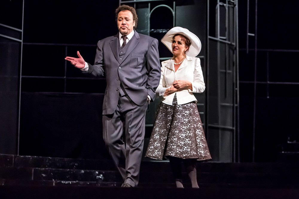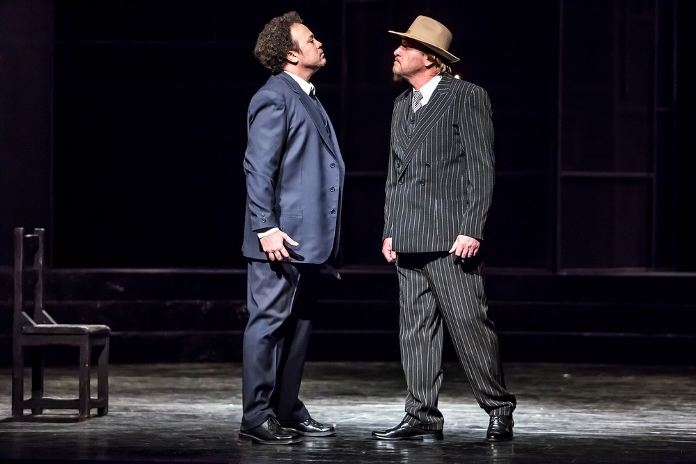 Režie Miroslava Veselého na funkční scéně Pavla Krejčího je koncepčně tradiční v onom dobrém slova smyslu. Pan Veselý je praktik a jeho cit pro vedení zpěváků je znát. Vystavěl nápaditě i sborové scény, které zapůsobily také svou jednotou a celistvostí výtvarného dojmu, v působivě barevných kostýmech Tomáše Kypty. Souboj ponechal v závěru mimo jeviště a jeho průběh a zlověstný dopad nechává vyjádřit ženské postavy na jevišti, jejichž osudu se tak fatálně dotýká. Bylo patrné, že u pěvců se snažil pokud možno omezit operistická gesta minulosti, která kupodivu v poslední době zvláštně ožila, jako kdybychom byli v době Otakara Mařáka a Emila Buriana. Je to zřejmě dáno i průnikem pěvců ze zemí, v nichž patos gest je poněkud více zažitý než u nás, kde je řada výborných režisérů minulosti důsledně potírala ve prospěch moderního jevištního projevu.