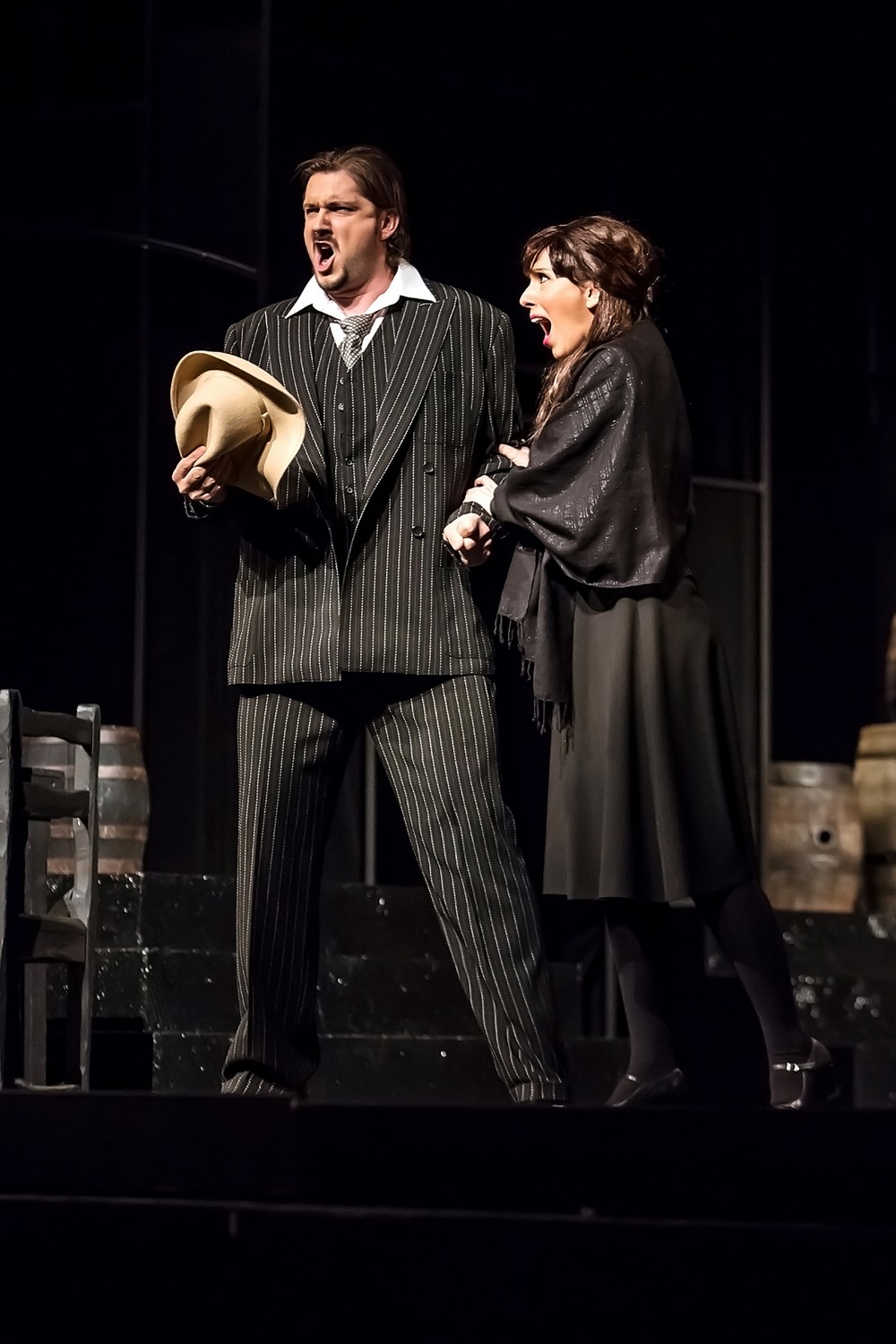 Na pondělní de facto spíše první repríze (představení je již pro abonenty divadla) byla obměna obsazení v rolích Santuzzy a Alfia, ostatní role zpívali pěvci premiéry. Wei Long Tao je v programu psán v alternaci pro Turidda, ale obě premiéry zpíval výše zmíněný tenorista Lázaro Calderón. Velmi zajímavou alternací byl na druhé premiéře basbarytonista Miloš Horák z Prahy jako Alfio. Objemný, opravdu průrazný hlasový fond, s moc pěkně krytými fis hned ve vstupní Alfiově písni o koníku. Mladý pěvec, soukromý žák Reného Tučka, se zatím uplatňoval více v basových rolích (mimo jiné i Basilio, Osmin) či ve vyšších basech typu Mozartova Figara. Ale Alfio je polohově typická barytonová partie. Měl jsem pocit, že mu ležela moc dobře a hlas polohou posazený do vyšší polohy se o to více rezonančně rozezní. Myslím, že toto obsazení bylo pro mladého pěvce šťastné. Začal se mi vybavovat v souvislosti s jeho pěveckým projevem legendární Antonín Švorc a jeho oborové zaměření. Druhou obměnou byla Šárka Hrbáčková v roli Santuzzy, pěvecky na mezzosoprán disponovaná, ale zejména jevištně velmi přesvědčivá. Zůstala mi v mysli i druhý den po představení, při určité reminiscenci na obě premiéry se mi vybavovala zejména tato zpěvačka. Prostě jsem ji drama ponížené a uražené ženy opravdu věřil. Určité výkony mi zůstanou zakódovány v představě i z minulosti. A vím, že jsou to ty výkony, které přesvědčují. Průměrné rychle zapomínám. Na adresu Alfiů musím v této souvislosti ale dodat, že jevištně mám dodnes před očima barytonistu Josefa Hořického, který v mládí pracoval kupodivu u sedláka, a tak uměl z praxe života skvěle práskat bičem! Režie toho využila a byla z toho skvostná píseň o koníku za rytmicky perfektního práskání bičem. Pěvec byl celkově ve výrazu role nesmírně intenzivní. Barytony obou premiér jsem pěvecky pochválil, ale scénicky, co platno, tenhle jevištní prožitek mi nasadil laťku pro všechny představitele Alfia herecky hodně vysoko. Ten mi netrumfli. Ale Santuzza ano, té jsem podlehl a na Santuzzy minulosti ani nemyslel.